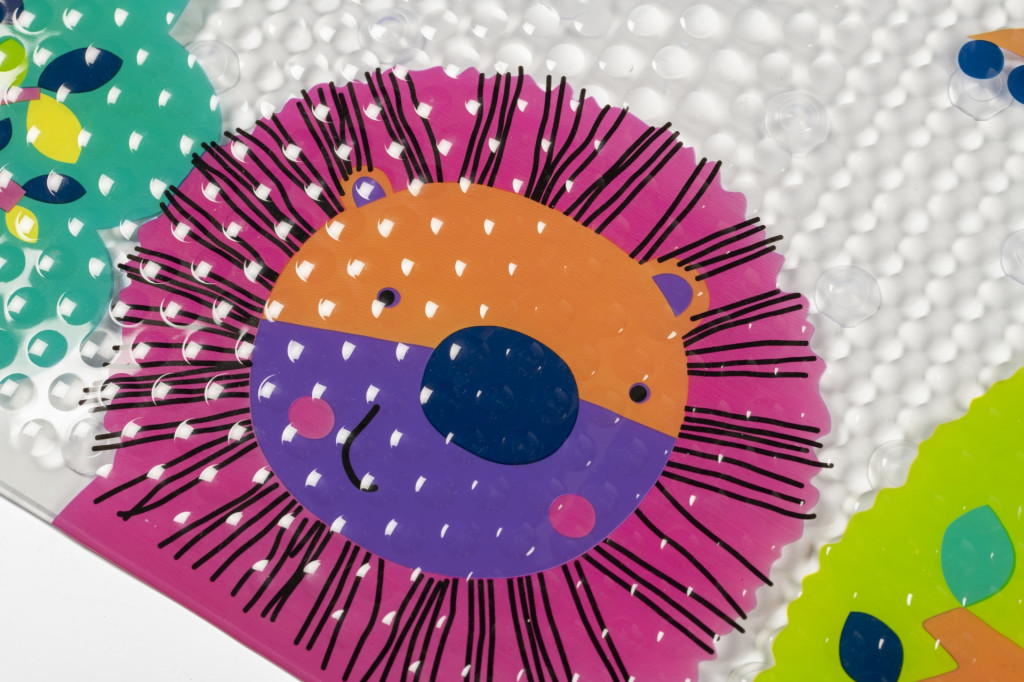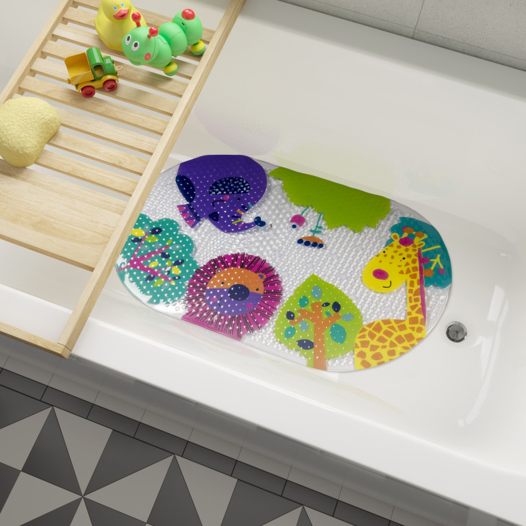 This educational bath mat features a colourful animal kingdom, perfect for family friendly bathrooms.