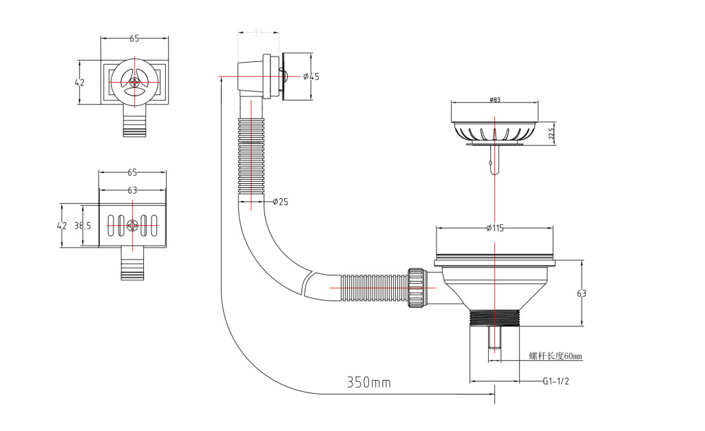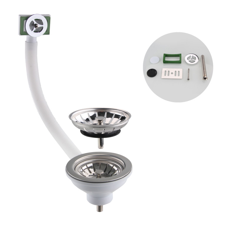Basket Strainer Waste with Universal Overflow Rectsngular/Round in Chrome