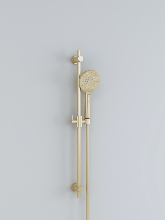 Contemporary Brushed Brass, Solid Brass Slide Rail Set with Smooth Hose and Multifunction Handset