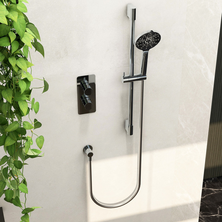 Ravine single outlet concealed thermostatic valve with adjustable multifunction handset in Chrome