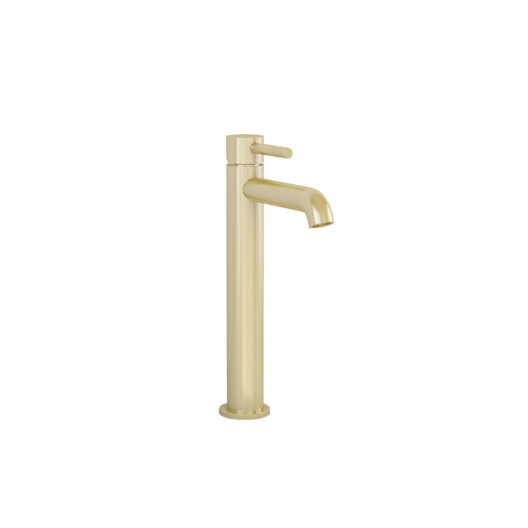 Ravine tall basin mixer in Brushed Brass with clicker universal waste