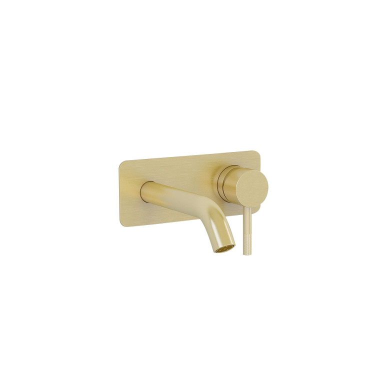 Ravine two hole wall mounted basin mixer in Brushed Brass with universal clicker waste