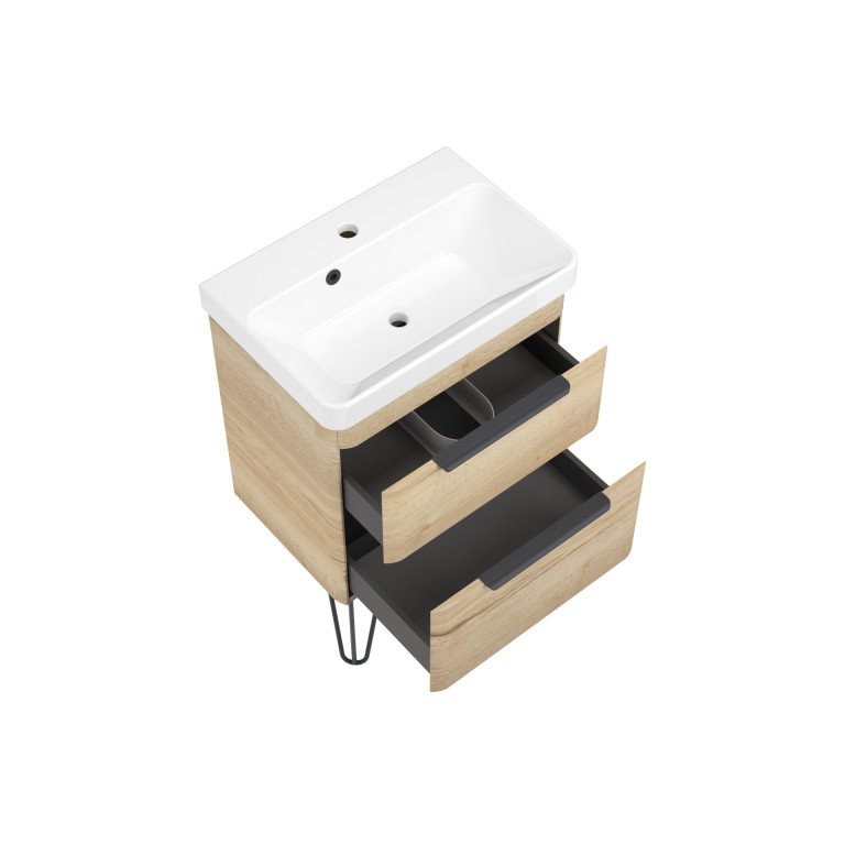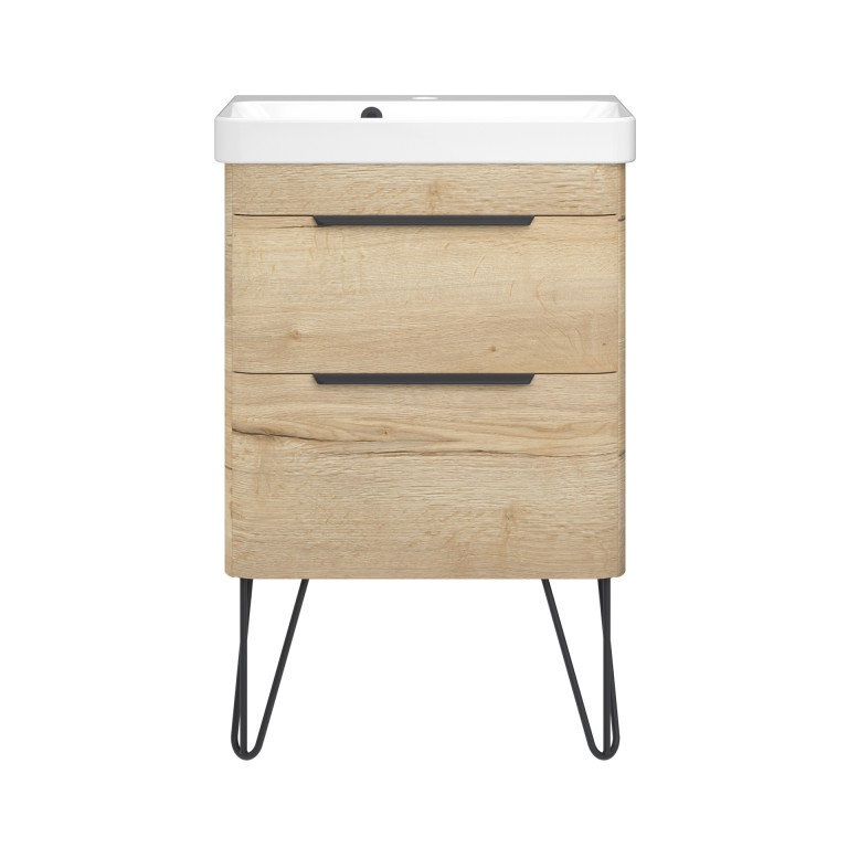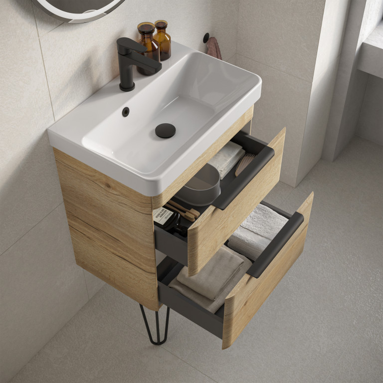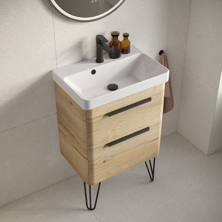 Crofton 2 Drawer Vanity 550mm with Ceramic Basin, Matt Black Loop Legs and Handles -...