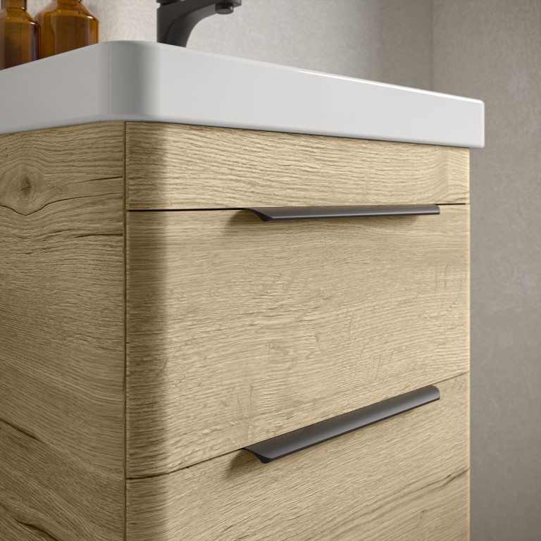 Crofton introduces a sleek and modern aesthetic with its gracefully rounded contours, a charming soft-matt finish and thoughtful features. Silent-close drawers ensure a smooth operation, while over-drawer handles contribute to Crofton’s clean and modern appearance. The ceramic basin complements the vanity's design and offers a durable and easy-to-clean solution for daily use, providing a sophisticated and functional addition to your bathroom.