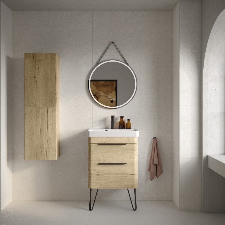 Crofton 2 Drawer Vanity 550mm with Ceramic Basin and Chrome Handles - Light Oak