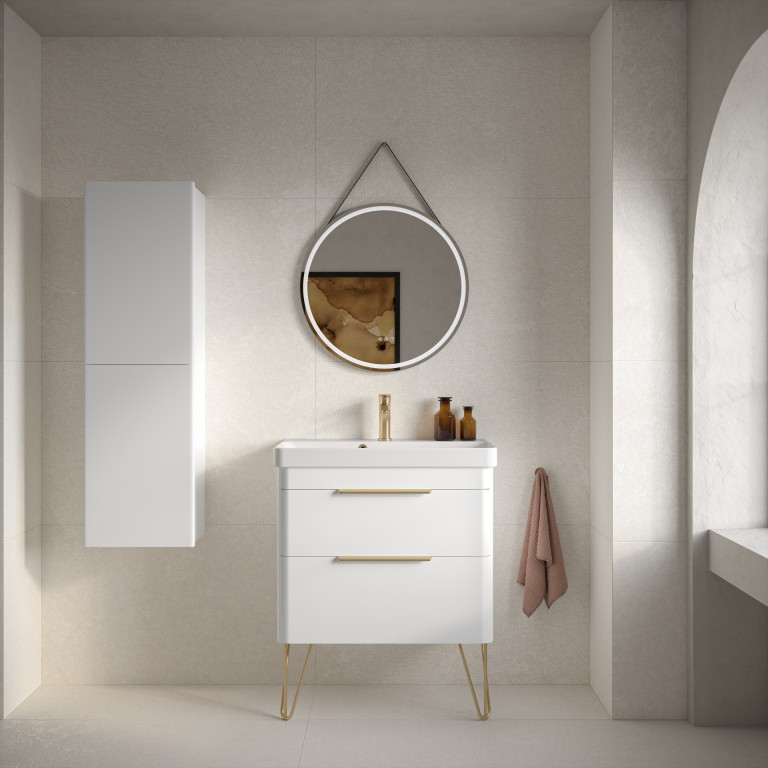 Crofton introduces a sleek and modern aesthetic with its gracefully rounded contours, a charming soft-matt finish and thoughtful features. Silent-close drawers ensure a smooth operation, while over-drawer handles contribute to Crofton’s clean and modern appearance. The ceramic basin complements the vanity's design and offers a durable and easy-to-clean solution for daily use, providing a sophisticated and functional addition to your bathroom.