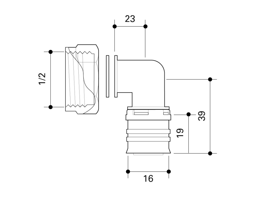 Fränkische Alpex-Duo XS Elbow Transition Coupling Flat-Sealing 16-G3/4