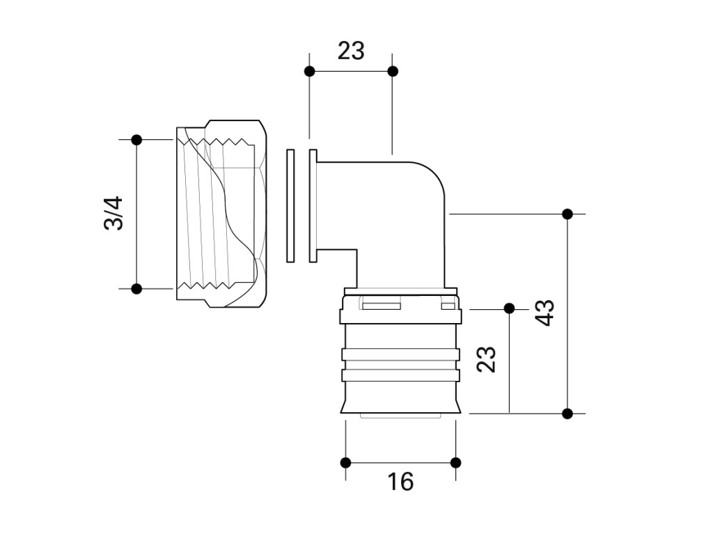 Fränkische Alpex-Duo XS Elbow Transition Coupling Flat-Sealing 20-G3/4