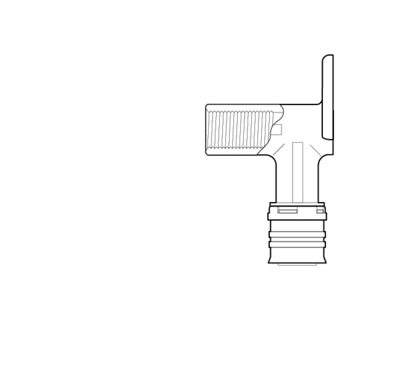 Female thread 78 mm wall mount elbow according to DIN EN 10226-1 made of dezincification-resistant brass for fitting connection in tee and serial installations in drinking water systems featuring a white fixation ring with integrated inspection holes, fixed stainless steel pressing sleeve and leak function. Pressable with pressing contours F and TH.