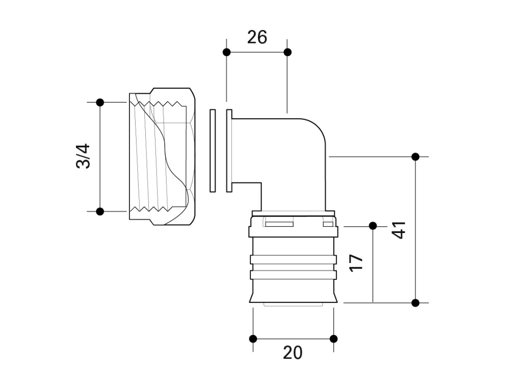 Fränkische Alpex-Duo XS Elbow Transition Coupling Flat-Sealing 16-G3/4