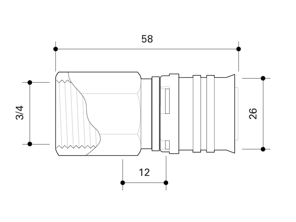 Female thread adapter according to DIN EN 10226-1 made of dezincification-resistant brass for drinking water and heating system installations featuring a white fixation ring with integrated inspection holes, fixed stainless steel pressing sleeve and leak function. Pressable with pressing contours F and TH.