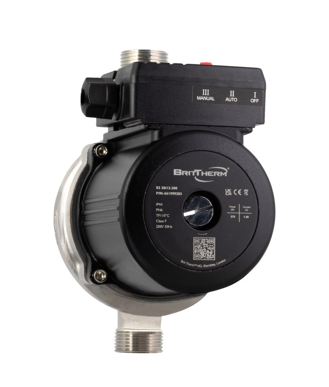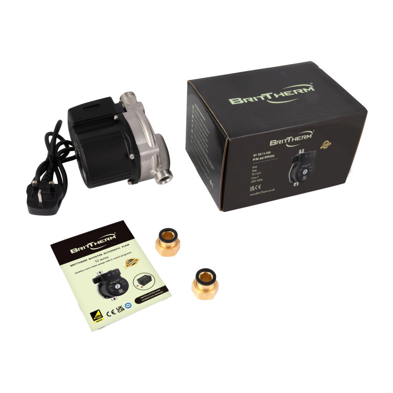 S2 Series pumps are constructed from stainless steel EN1.4521 type casing and offer dual-mode automatic operation for home plumbing, featuring a standard ¾" threaded connection.