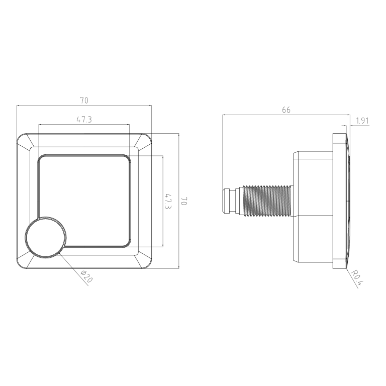 - 66mm (D) x 70mm (W) x 70mm (H)