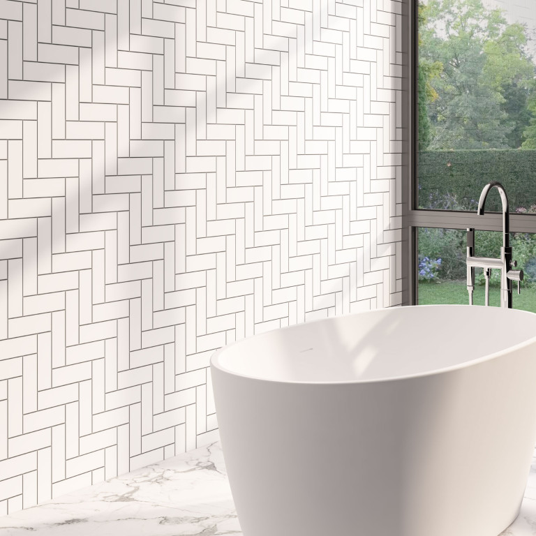 - White Herringbone Vertical Cut