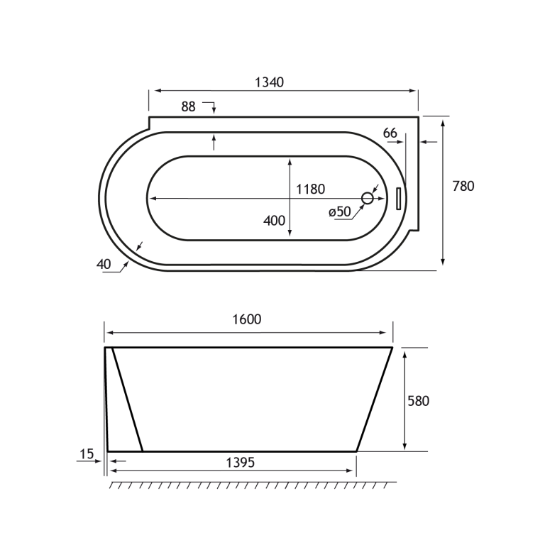 Bray 1600 Right Hand Bath inc waste