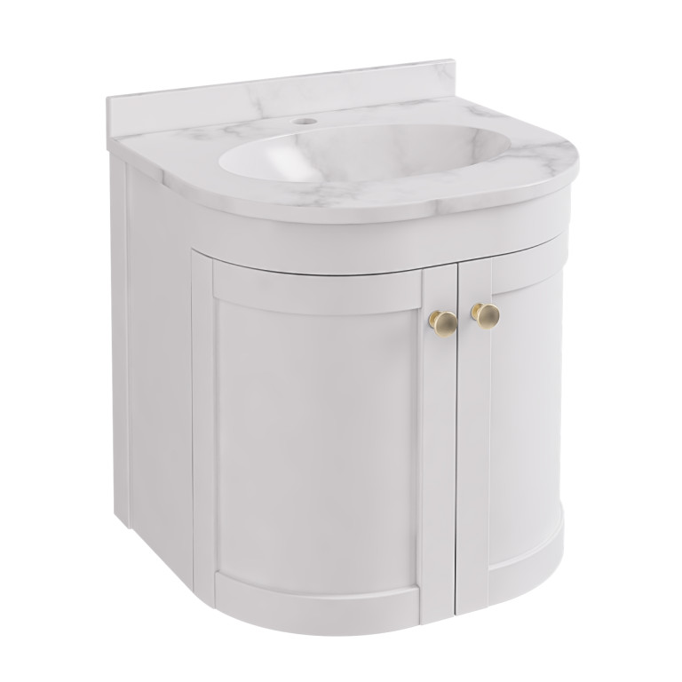 The Hardwick bathroom furniture with the traditionally inspired curved lines and door panels of the vanity unit.