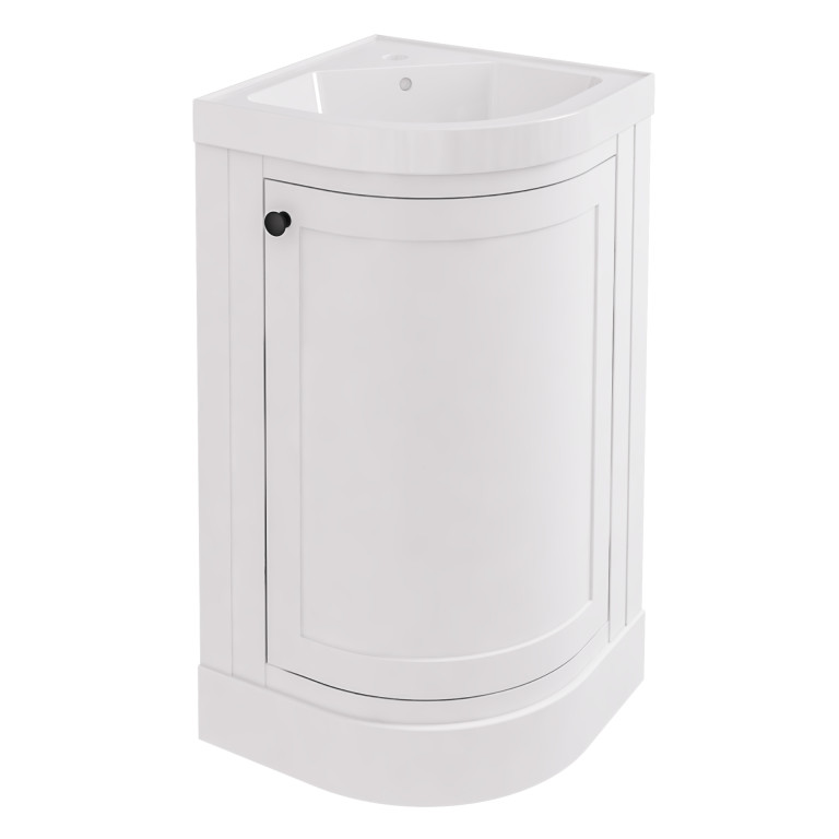 The Hardwick bathroom furniture with the traditionally inspired curved lines and door panels of the vanity unit.