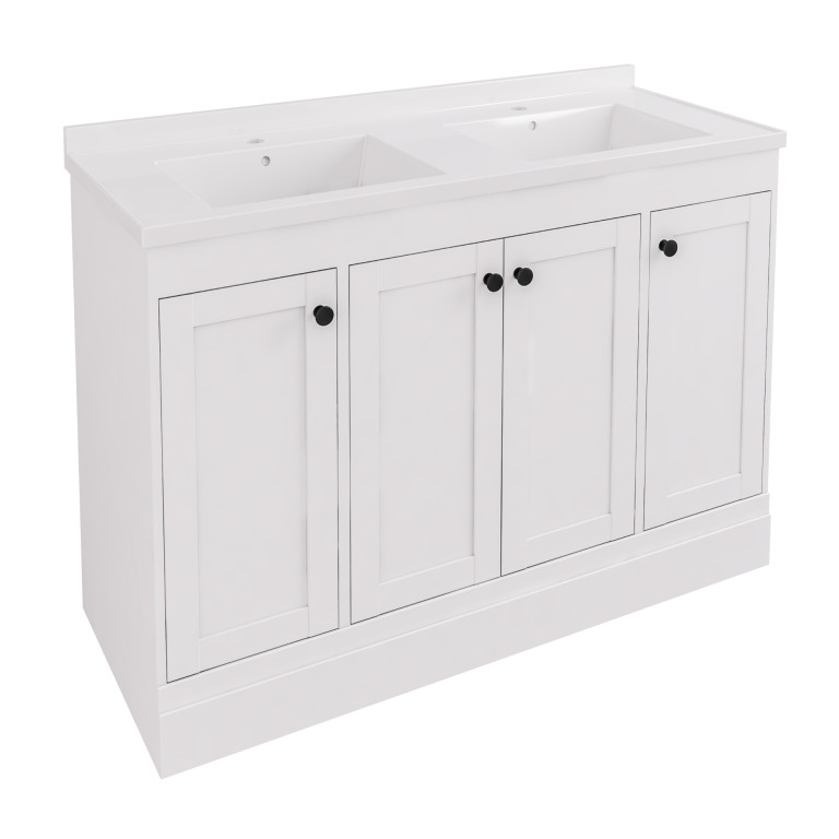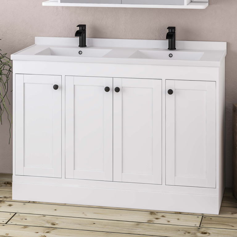 Hardwick 1200 mm Quartz Square Double Bowl 2 Tap Holes - White