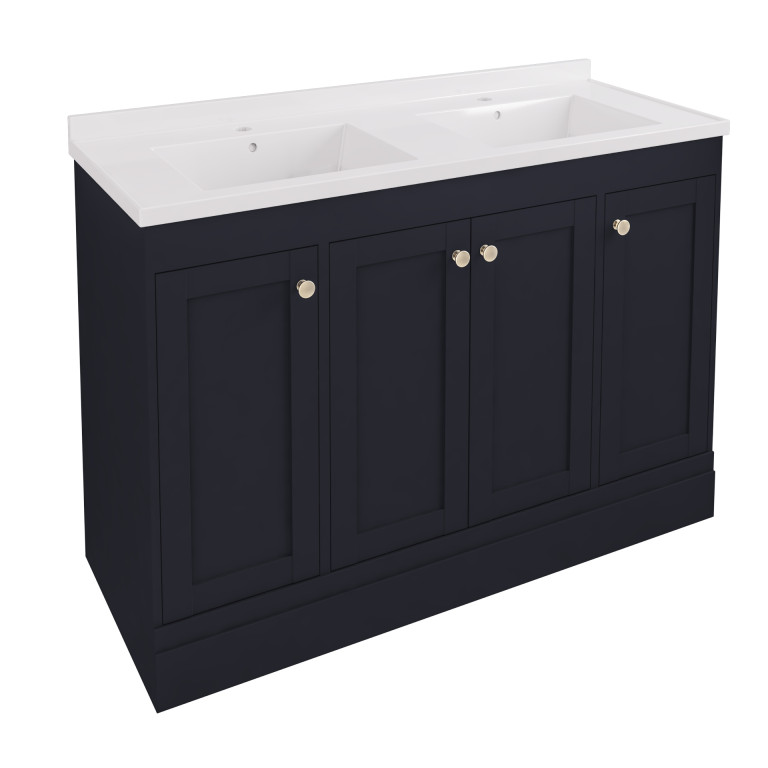 Hardwick Straight 1200mm Double Bowl Floorstanding Vanity Unit s - Matt White
