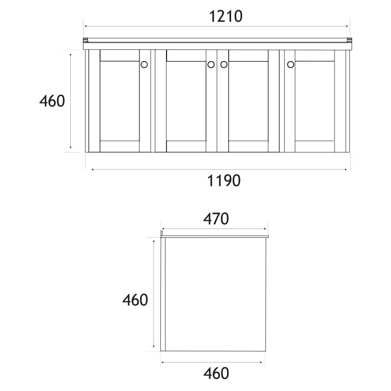 - 460mm (L) x 1190mm (W) x 460mm (H)