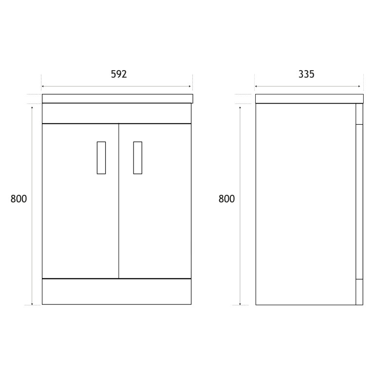 - 335mm (L) x 592mm (W) x 800mm (H)
