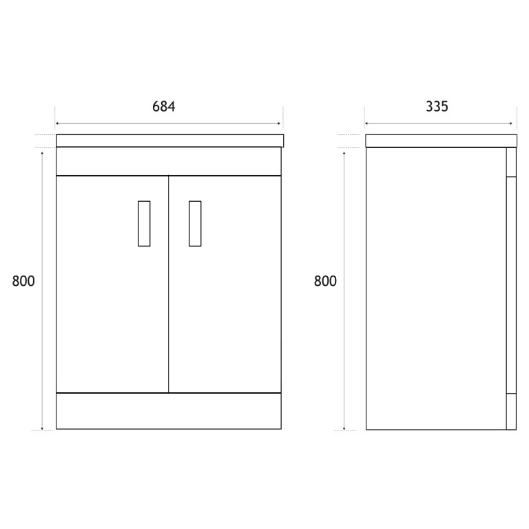 - 335mm (L) x 684mm (W) x 800mm (H)