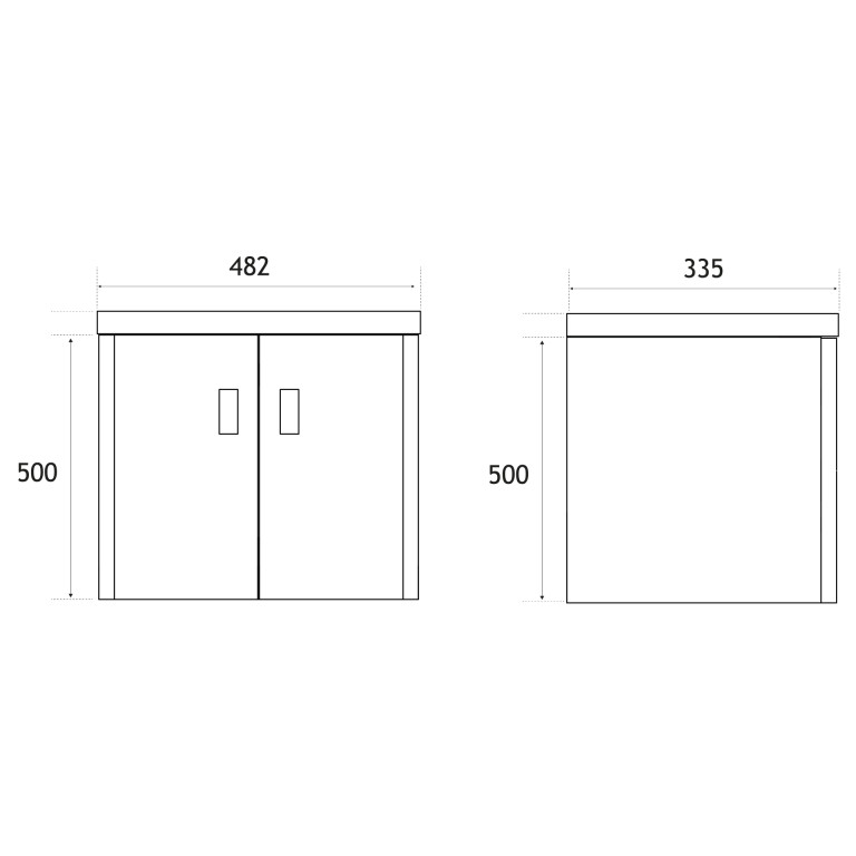 - 335mm (L) x 482mm (W) x 500mm (H)