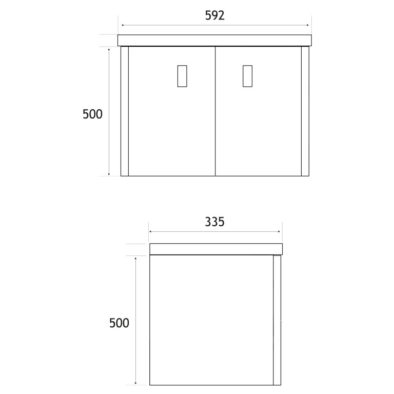 - 335mm (L) x 592mm (W) x 500mm (H)