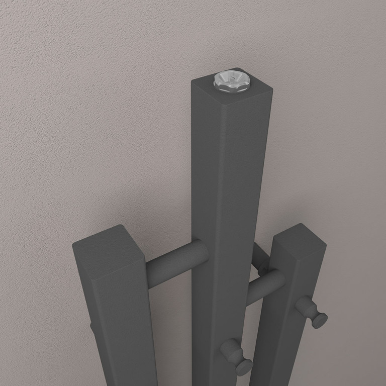 • A masterpiece for your bathroom or any other room. The square vertical bars at the top can be used as towel / bathrobe hangers and the 3 x robe hooks can be used to dry your towels too. This exceptional design is available in 4 colour options.