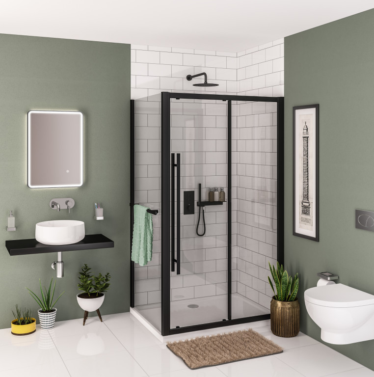 • Shower Enclosures Shower Doors Sliding Doors Vantage 2000 1300 slider Shower Door - Matt Black