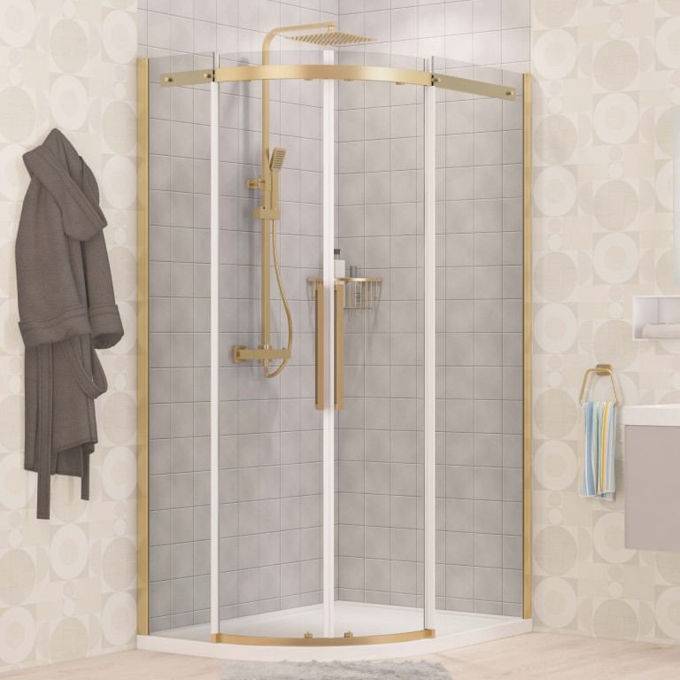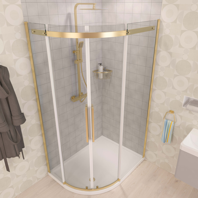 Corniche 2000 Offset Quadrant 900x800x2000 Right Hand Shower Enclosure - Brushed Brass