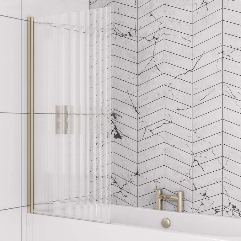 Download (0.22 MB)5mm Straight bath screen in fluted glass L-H Brushed Brass