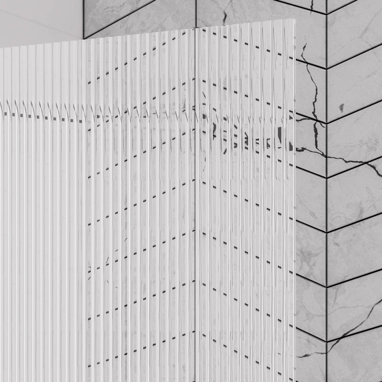 Download (0.29 MB)5mm Straight bath screen in fluted glass R-H Chrome