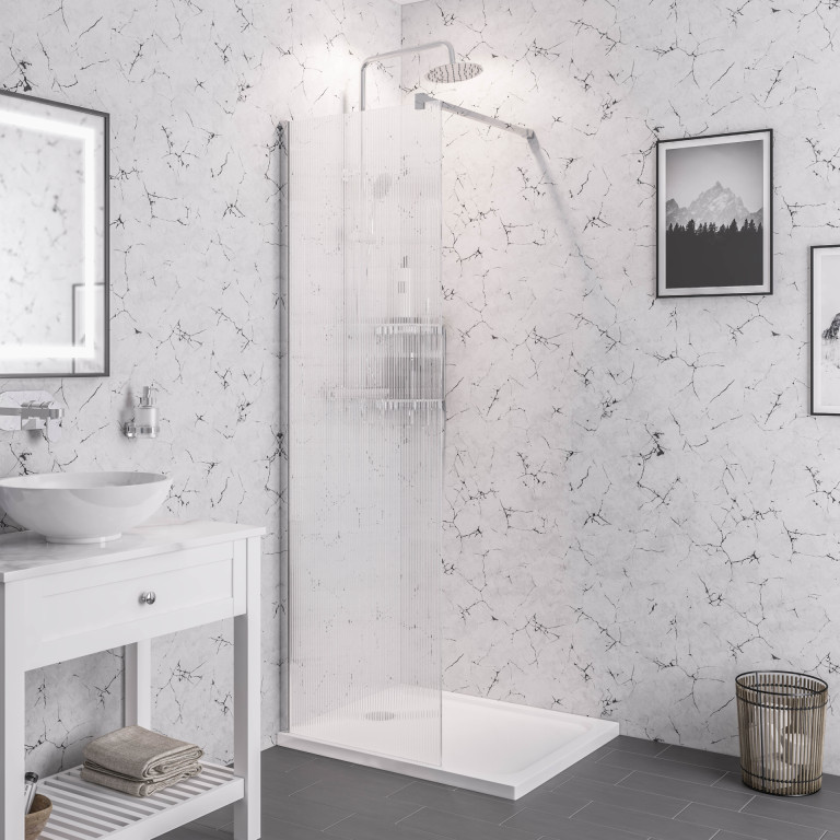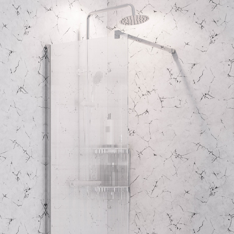 Vantage 2000 8mm fluted glass walkin Shower panel 900 x 2000 - Chrome