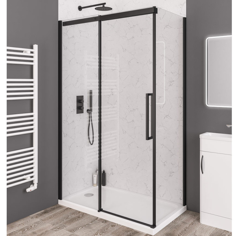 Corniche 2000x1200 8mm Semi-Frameless Sliding Shower Door - Matt Black