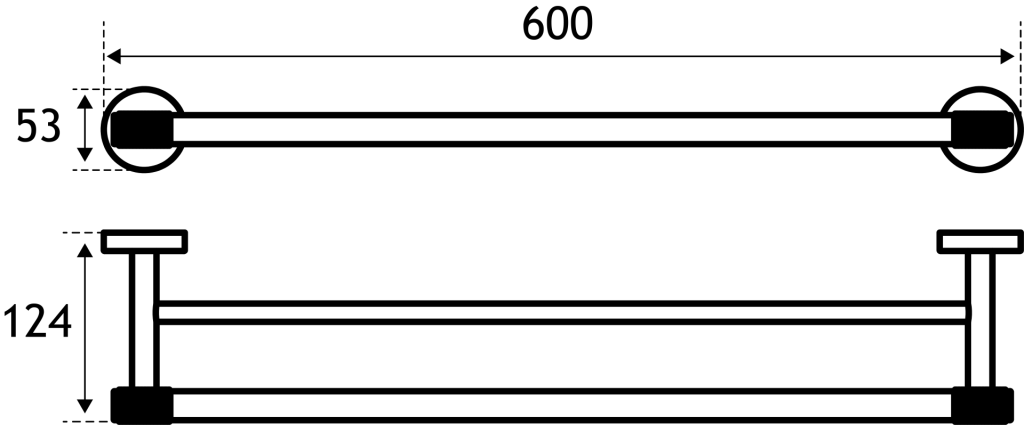 - 124mm (L) x 600mm (W) x 53mm (H)
