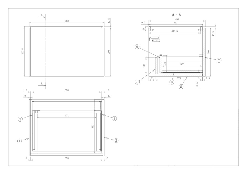 - 455mm (L) x 602mm (W) x 400mm (H)