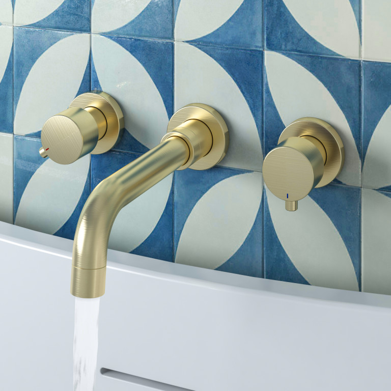 Meriden Three Hole Wall mounted Bath Tap set - Chrome