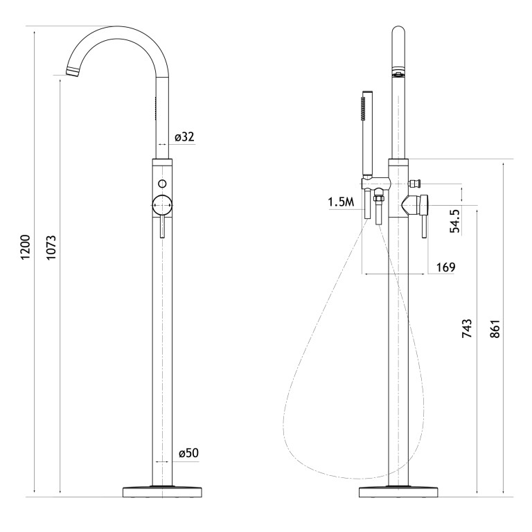 - 346mm (L) x 200mm (W) x 1200mm (H)