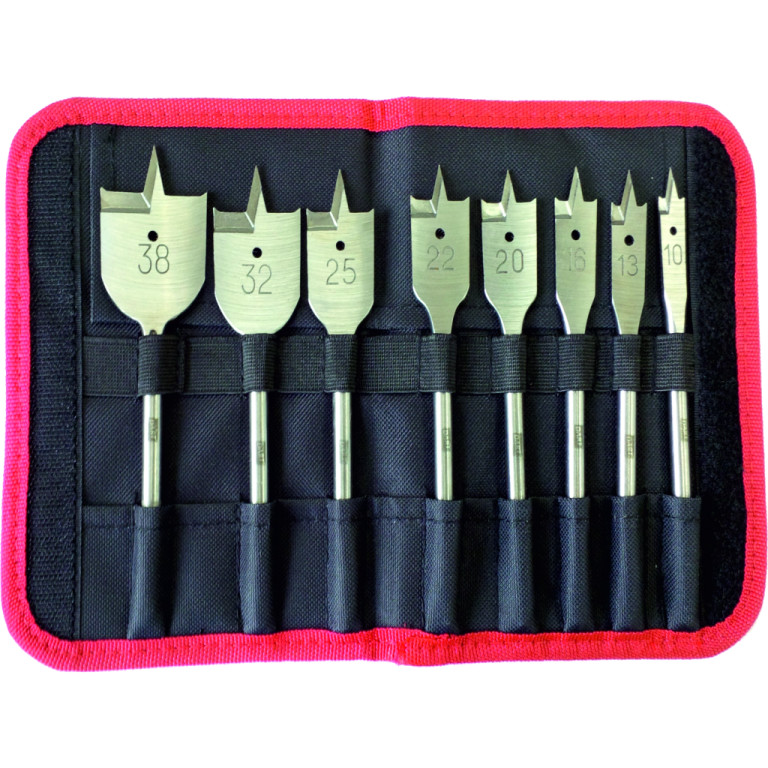 Download (0.15 MB)Precision engineered flat bit for fast and exact cutting. Designed to ensure faster and easier drilling, with double side spurs providing cleaner holes and reduced vibration. Side scoops optimise removal of wood chippings. 1/4" Hex quick change shank. Suitable for general use in drilling wood, plastic and plasterboard. This set contains 10,12,16,18,20,25,32,38mm bits.