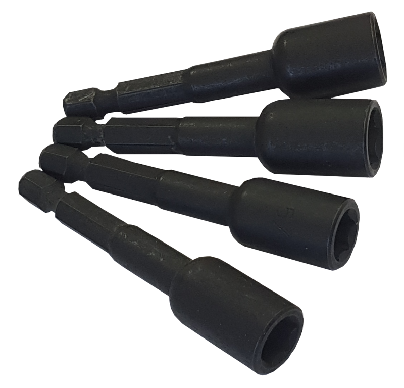 A range of premium magnetic nutsetters for fastening bolts, screws and nuts. 1/4" hex quick change shank is designed to work with impact drivers and reduces slipping in standard drill chucks. Rare earth magnets hold fasteners securely with four times the hold of standard magnets. Lobular design drives fastener on the side instead of the corner for less stripping and longer life.