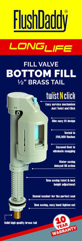 - Slim easy fit design, tested to 250,00 flushes, encased float to eliminate snagging, water saving delayed fill action, time saving twist & lock height adjustment, domed washer for the perfect seal, time saving easy hand tighten nut